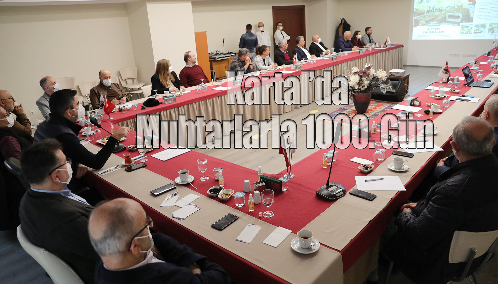 Kartal Belediyesi hizmet binasında Başkan Gökhan Yüksel’in öncülüğünde gerçekleştirilen toplantıda, belediye hizmetlerinin 1000 günlük sürecini kapsayan bir sunum, ilk kez muhtarlarla paylaşıldı
