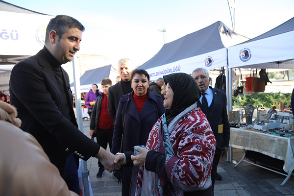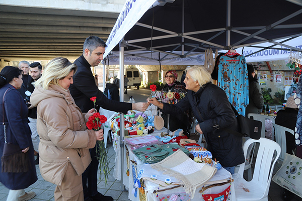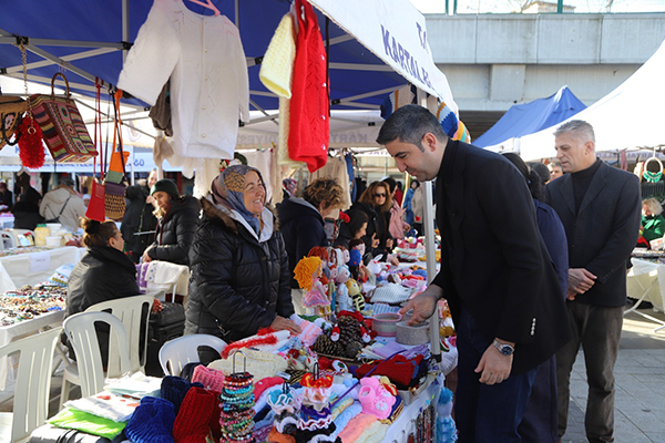 Kartal Belediyesi Kadın ve Aile Hizmetleri Müdürlüğü’nün girişimi ile gerçekleştirilen Kartal Kadın Emeği Pazarı’nda, 180 kadın girişimcinin tezgâhını tek tek ziyaret eden Başkan Yüksel, kadınlara karanfil ve yılbaşı şekeri takdim etti, alışveriş yapmayı da ihmal etmedi.