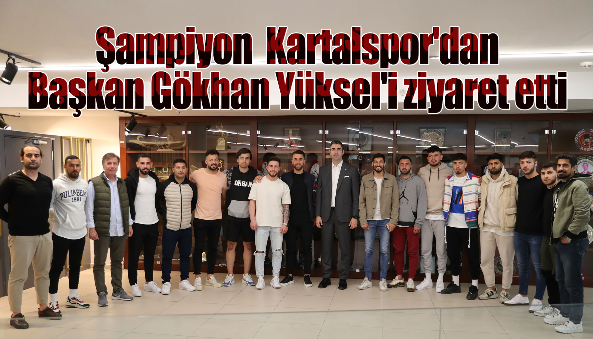 Kartal Belediyesi Başkanlık Makamında gerçekleştirilen ziyarette, Cumhuriyet Halk Partisi Kartal İlçe Başkanı Efendi Argunşah, Belediye yönetimi, Kartalspor Başkanı Binali Aydın, teknik ekip ve futbol