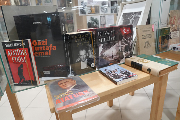 Sergide ayrıca Nutuk’un Osmanlıca baskısı, Atatürk’ün 1924 yılı sonbahar gezilerini anlatan Osmanlıca ilk baskı kitap ile bu eserin tercüme edilmiş son baskısı da yer alıyor. Döneminin Atatürk kapaklı illüstrasyon dergileri sergide geniş yer bulurken, yerli ve yabancı olmak üzere yaklaşık 100’e yakın çeşitli dergi ile Atatürk temalı yaklaşık 100’e yakın çeşitli kitap ziyaretçilerin beğenisine sunuluyor. Fransız fotoğrafçı Jean Weinberg’in nadir bulunan ‘Gazi’nin Eseri’ adlı kitabı da sergide öne çıkan eserler arasında yer aldı.