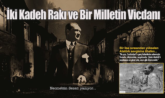 onun gibi düşünmektir. Sağlıklı kalın...“Bir lise öğrencisinin duvar gazetesinde yayımlanan yazısından esinlenilmiştir.”"İKİ KADEH RAKI" BİR LİSE ÖĞRENCİSİ, OKULUNUN DUVAR GAZETESİNE YAZMIŞ.İNANILMAZ GUZEL VE FARKLI BİR BAKIŞ AÇISI İYİ DE YAPMIŞ..Bu ülkede yasayan her insanın bağımsızlığını ve demokrasisini borçlu olduğu insan: ATATÜRK...Gençliğinde kot pantolon giyememiş. Sevgilisin elinden tutup hasılat rekorları kıran bir sinema filmine gidememiş...Padişah ona Trablusgarp Cephesi'nde görev verdiğinde, lüks uçak şirketinin, first class koltuğunda viskisini yudumlayarak görev yerine gidememiş...Halkına bağımsızlık fikrini anlatabilmek için kortej esliğinde Mercedes'lerle gezememiş Anadolu'yu...Kurtuluş hareketini başlatmak için 19 Mayıs'ta Samsun'a ayak basan ayağında spor ayakkabısı ya da kovboy çizmesi yokmuş....Kazandığı her savaştan sonra savaş sahasına fırlayıp moral veren mini etekli ponpon kızlar da yokmuş...Tarih kitapla anlıları İzmir'den denize döktükten sonra timsah yürüyüşü de yapmamışlar...Ülkesinde yapacağı devrimleri, unutmamak için not alacağı bir cep bilgisayarı olmadığı gibi, kendisine suikast girişiminde bulunacakları da cep telefonundan öğrenememiş!Atatürk için üzülüyorum.Dağ gibi adam, bir radyo programına faks çekemeden, İsmet Paşa için Safiye Ayla'dan bir istek parçası isteyemeden gitti…Lozan Zaferi'nden sonra veya Cumhuriyet'in ilanından sonra arabaya atlayıp sabahlara kadar korna çalıp, elinde bayraklarla sokaklarda tur atamadı.Evinin balkonuna çıkıp, bir şarjör mermiyi havaya sıkamadı.Atatürk'e acıyorum... Sen kalk, dört kadınla evlenebileceğin bir dönemde dünyaya gel, sonra değerini bilmeyip tek kadınla evlilik sistemini getir.Aaaah ah...Çılgın diskolara gitmek, sabahlara kadar içip, içip rock yapmak, babasının Mersedesini alıp söyle bir Emirgan turu çekmek dururken... Bunları yapmadı Atatürk....Keyif çatmadı... Yan gelip yatmadı... Vatan topraklarını satmadı...Tüm hayatını ülkesinin kurtuluşuna ve uygarlaşmasına harcadı...İŞTE ONUN İÇİN BÜYÜK ADAMDI ATATÜRK HER FIRSAT ELINDE VARDI.. O İSE SADECE BU MİLLETİN BAĞIMSIZLIĞINI İSTEDİ.BÜTÜN SUÇU 2 KADEH RAKI İÇMEKTİ O KADAR...
