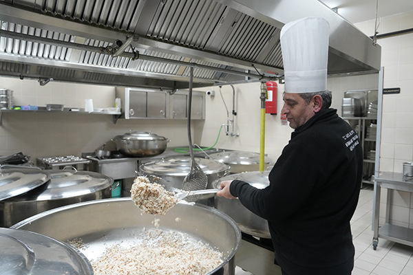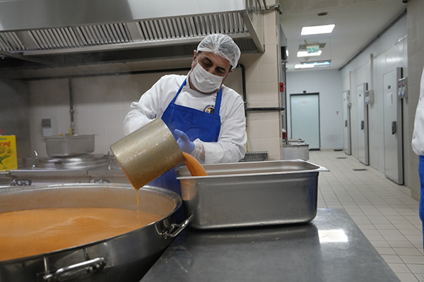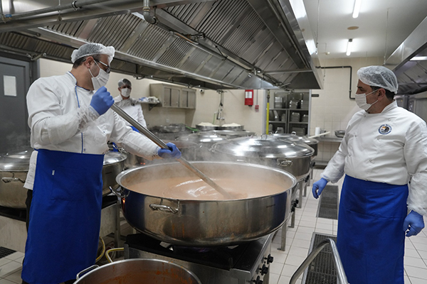 Esentepe Mahallesi’nde bulunan Kartal Belediyesi Neriman-Sami Türkdoğan Aşevi ve Gıda Bankası’nda hazırlanan sahur ve iftar yemeklerinin üretimi, paketlenmesi ve dağıtımı titizlikle sürdürülüyor. Aşevi ekipleri tarafından gerçekleştirilen çalışmalarda sahur ve iftar için hazırlanan yemekler; hijyen kurallarına uygun şekilde üretiliyor, porsiyonlanıyor, vakumlanarak paketleniyor ve ihtiyaç noktalarına ulaştırılıyor.