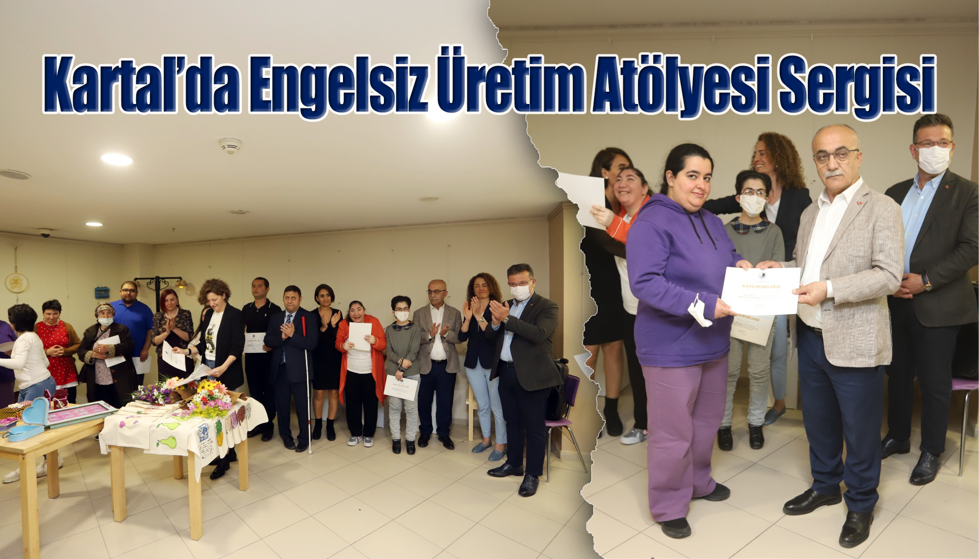 Serginin açılışına Kartal Belediye Meclisi Başkan Vekili Özlem Bulut, Kartal Belediyesi Başkan Yardımcıları; Hüseyin Tozkoparan, Mustafa Oktay Aksu ve İmam Aydın’ın yanı sıra Kartal Belediyesi personeli, vatandaşlar, Engelsiz Üretim Atölyesi’nde eğitim gören gençler ve aileleri katıldı.Sergininin açılışında konuşan Kartal Belediyesi Sosyal Yardım İşleri Müdürlüğü Engelliler Birim Şefi Özgür Uğur, serginin büyük bir emek ve sevginin sonucu oluştuğunu ve dolayısıyla serginin adının da bu yüzden “Sevgiden Emeğe Engelsiz Üretim” olduğunu söyledi. Uğur konuşmasında sergide büyük emeği geçen el sanatları öğretmeni Gülseren Çolak’a ve seramik atölyesi öğretmeni Semira Oray’a teşekkür etti.Törende daha sonra Kartal Belediye Meclisi Başkan Vekili Özlem Bulut, Kartal Belediyesi Başkan Yardımcıları Hüseyin Tozkoparan ve Mustafa Oktay Aksu tarafından öğretmenlere ve Özgür Uğur’a buket takdimi yapıldı.Engelsiz Üretim Atölyesi’nde emek veren öğrencilerin katılım belgeleri de törenle verildi. Engelli bireyler tarafından üretilen el sanatları ve seramik ürünlerin yer aldığı sergi 13 Mayıs tarihine kadar ziyaretçilerini ağırlıyor olacak.
