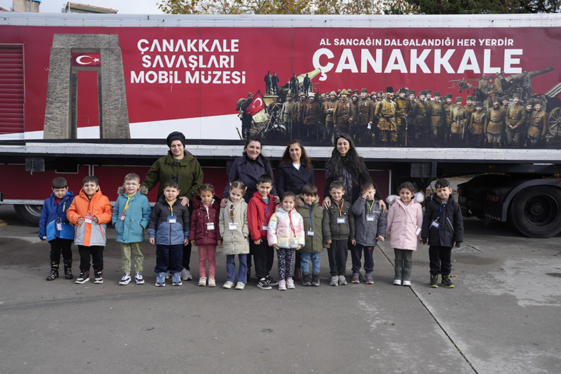 Kartal Meydanı’na kurulan Çanakkale Savaşları Mobil Müzesi, bu kez Kartal Belediyesi’ne bağlı kreşlerde eğitim gören 6 yaş grubu çocuklarla dolduruldu. Öğretmenleri eşliğinde müzeye getirilen minikler, savaş dönemine ait silahlar, giysiler ve mektupların sergilendiği alanları gezdirildi.Belediye yöneticilerinin de katıldığı etkinlikte, çocukların meraklı bakışları objektiflere poz olurken, akıllarda şu soru kaldı: