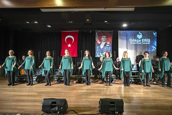 Yurt içi ve yurt dışında uzun yıllar solistlik yapan ve İzmir'de 22 yıldır aktif koro şefliği yapan ses sanatçısı ve müzik terapisti Gökçe Eriş öncülüğünde, iş yaşamında yer alan 30'a yakın beyaz yakalı kadının amatör ruhla bir araya gelmesiyle kurulan Müzikle Terapi Topluluğu, müziğin iyileştirici gücünü sanatseverlerle paylaşmaya devam ediyor.Farklı sektörlerde başarılı iş yaşamlarını sürdüren; hayatın her alanında önemli sorumluluklar üstlenen kadınların sanatta umut ve inanç dolu yolculuğuna iyi bir örnek oluşturan Müzikle Terapi Topluluğu, Ahmet Piriştina Kültür Merkezi'nde yine görkemli bir geceye imza attı.3 saat süren konserde Türk Sanat Müziği'nin ulu çınarları sayılan ve aralarında Muallim İsmail Hakkı Bey, Kaptanzade Ali Rıza Bey, Muzaffer Sarısözen, Yalçın Tura, Avni Anıl, Zeki Müren ve Zekai Tunca'nın olduğu ünlü bestecilerden, nihavend ve nişabürek makamlarında unutulmaz eserleri seslendiren koro konuklardan tam not aldı.Solo ve koro performanslarının sergilendiği gecede, Müzikle Terapi Topluluğu üyelerinin perküsyon ve halk oyunları gösterileri de büyük alkış aldı. Geceye konuk olarak katılan Halk Müziği Sanatçısı Sevim Taşcı Coşkun'un, koro ile birlikte seslendirdiği şarkılara sanatseverler de alkışlarıyla eşlik etti;Ünlü Halk Müziği Sanatçısı Hale Gür ve Türkiye'de modern dansın öncüsü olarak tanınan Burçin Orhon'un da konuk olarak yer aldığı programda Türkiye'de ilk kez kadınlara özel stand up gösterisiyle tanınan Benan Bilek de, salonu dolduran konuklar ve koro ile gerçekleştirdiği Yedi Kocalı Hürmüz performansı ile geceye büyük renk kattı.