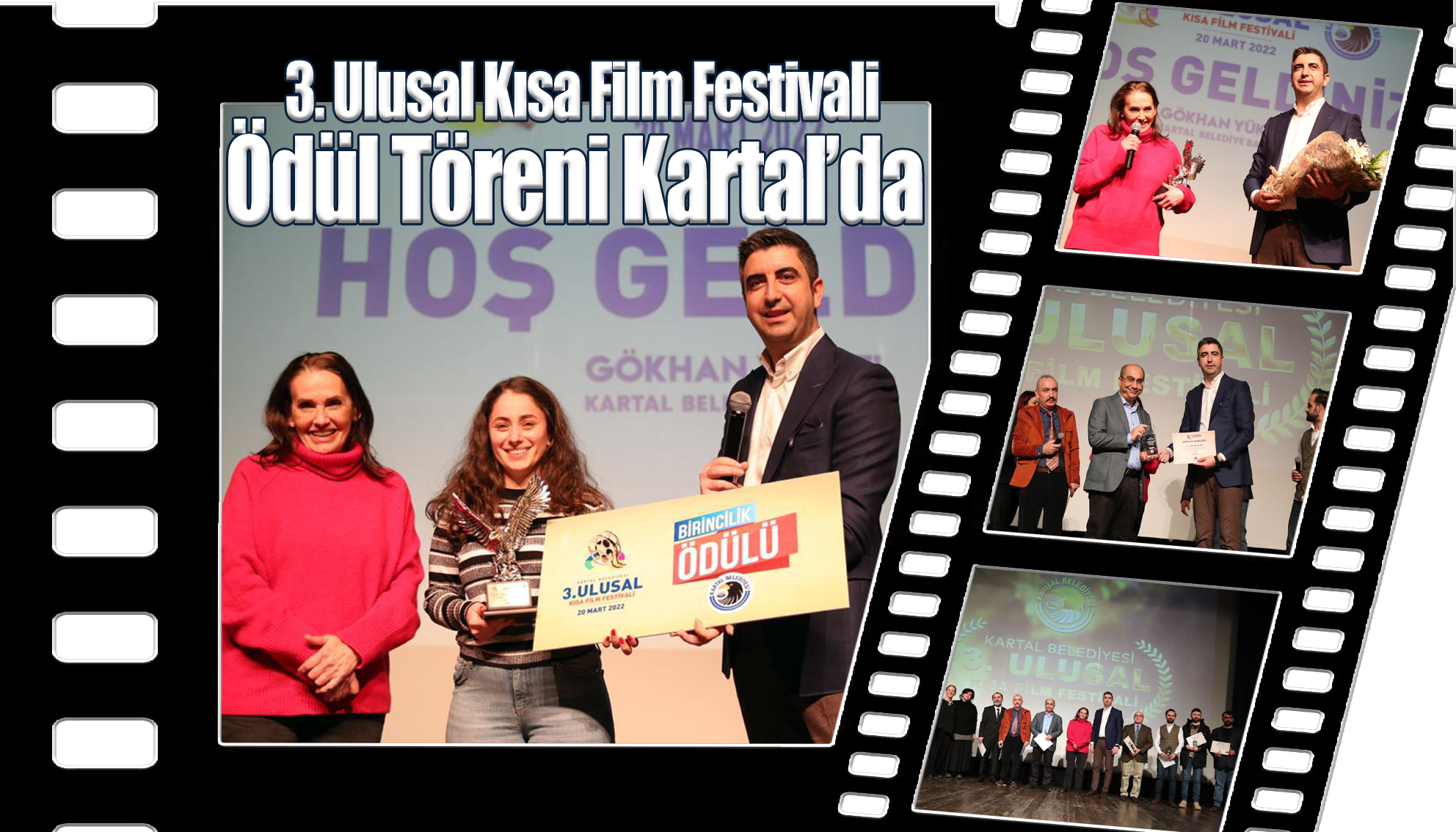 166 filmin yarıştığı festivalin ödül töreninde, ünlü sinema ve tiyatro oyuncusu Nur Sürer’e ‘Onur Ödülü’ verildi.166 Kısa Filmin Arasından 12’si Finale KaldıHasan Ali Yücel Kültür Merkezi’nde gerçekleşen ödül törenine, Kartal Belediye Başkanı Gökhan Yüksel’in yanı sıra; sinema ve tiyatro oyuncusu Nur Sürer, Cumhuriyet Halk Partisi (CHP) Kartal İlçe Başkanı Efendi Argunşah, Kartal Belediyesi Meclis Başkanvekili Özlem Bulut, Kartal Belediyesi Başkan Yardımcıları, festivalin jüri başkanlığını yapan ünlü yönetmen Derviş Zaim ile çok sayıda sinemasever katıldı.Ünlü Sanatçı Nur Sürer “Kısa Film Bu İşin Cenini”Ödül töreni, Kartal Belediye Başkanı Gökhan Yüksel’in, ünlü sinema ve tiyatro oyuncusu Nur Sürer’e ‘Yaşam Boyu Sinema Emek ve Onur Ödülü’nü takdimiyle başladı. Ödülünü Başkan Gökhan Yüksel’in elinden alan ünlü sanatçı Nur Sürer, yaşadığı mutluluğu ifade ederek; “Bu ödülü çok önemsiyorum. Buraya setten geliyorum.Öncelikle Kartal Belediyesi’ni böyle bir festivali gerçekleştirdiği için kutluyorum. Ben sinema oyunculuğuna başladığımda, kısa filmin ne olduğunu bilmiyordum. Yani bütün filmleri uzun zannediyordum. Sonra tabii önemini anladık. Kısa film gerçekten bu işin cenini, burada başlıyor her şey.Kısa film yapan öğrencileri önemsiyorum. Yapılan işleri o kadar beğenerek izliyorum. Çünkü orada gördüğüm şeyler ilerinin çok önemli sinemacılarını çıktığını gösteriyor. Eminim burada da çok iyi işler çıkaran gençlerimiz vardır. Bu ödül için hepinize teşekkür ediyorum.” ifadelerini kullandı.Törenin devamında, Kartal Belediye Başkanı Gökhan Yüksel, sanatçı Nur Sürer ile birlikte festivalin jüri başkanlığını yapan Derviş Zaim’e ve 11 jüri üyesine teşekkür plaketi takdim etti.Umut Vadeden Genç Yönetmen Ödülünün Kazananı: Kartallı Yönetmen Tufan YılmazFestivalde, ‘Umut Vadeden Genç Yönetmen’ ödülünün kazananı, ‘Pencere Ödülü’ filmiyle Kartallı yönetmen Tufan Yılmaz olurken, Jüri Özel Ödülleri’nin sahipleri ise; Anaoush filmi ile Deniz Telek ve Şero filmi ile Mustafa Efelti oldu.Kartal Belediyesi Meclis Başkanvekili Özlem Bulut ‘Umut Vadeden Genç Yönetmen’ ödülünü, sinemacı Derviş Zaim ve Dr. Selahattin Yıldız ise jüri özel ödüllerini sahiplerine teslim etti.Jüri Başkanı Derviş Zaim, yaptığı konuşmada tüm sinemaseverlere teşekkür ederek, jürinin festivaldeki kriterlerini şu sözlerle açıkladı: “Kartal Belediye Başkanı Gökhan Yüksel’e ve bizleri yalnız bırakmayan tüm sinema dostlarına sonsuz teşekkürler. Jürimiz, biçim ve içerikte yeni eğilimlerin varlığını gözlemlemiş, evrensel bir tavrın mevcudiyetini araştırmış ve söylenmesi zor durumları ve açmazları ifade edebilme kapasitesi ile ödülleri belirlemiştir.” dedi.En İyi Film: VesikalıkEtkinliğin devamında, 166 filmin arasından ilk 3’e giren filmlerin ödülleri sahiplerine teslim edildi. 3’üncülük ödülü, yönetmenliğini Abdulselam Çakay’ın yaptığı ‘Sar’ kısa filminin, 2’ncilik ödülü Zafer Geyikçi’nin yönetmeliğindeki ‘Ziyaretçi’ filminin ve 1’incilik ödülü ise Ali Rıza Erdemir’in yönetmenliğindeki ‘Vesikalık’ kısa filminin oldu. Festivalde En İyi Kısa Film 10.000 TL, En İyi İkinci Kısa Film 7.500 TL ve En İyi Üçüncü Kısa Film 5.000 TL ödülün sahibi oldu.Sanatçı Nur Sürer 3’üncülük, CHP Kartal İlçe Başkanı Efendi Argunşah 2’ncilik ve Kartal Belediye Başkanı Gökhan Yüksel Sanatçı Nur Sürer ile birlikte 1’incilik ödülünü sahiplerine teslim etti.“Hedefimiz Festivali Uluslararası Alana Taşımak”Kartal Belediye Başkanı Gökhan Yüksel, törende yaptığı konuşmada festivale katılan tüm sinema emekçilerine teşekkür ederek; “Festivali planlarken ana amacımız öncelikle kültür ve sanata hizmet etmek. Geleceğin yeni filmleri, yapıtları ve yönetmenleri ile sinema filmlerine gidecek yolun buradan geçtiğine ekip olarak biz de inanıyoruz.Bu anlamda Kartal’dan katılan komşularımız da var. Önümüzdeki yıl dördüncü festivalde ulusal düzeyde bu işi devam ettirip, sonra bu sistemi oturttuktan sonra uluslararası arenaya taşımak, en büyük hayalimiz ve hedefimiz. Katılan ve emeği geçenlere teşekkür ediyorum. Bu yoğunlukta bana katlandığı için eşime de ayrıca teşekkür ediyorum.” ifadelerini kullandı. Ödül törenin sonunda, sinemaseverlere 1’incilik ödülünü kazanan ‘Vesikalık’ filmi izletildi.